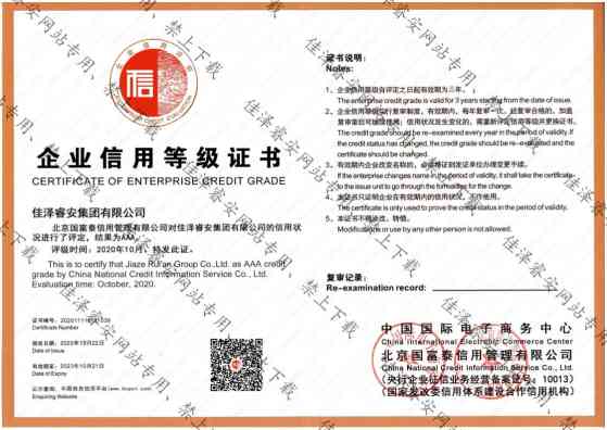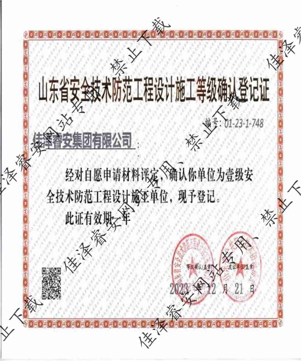 安全技術(shù)防范工程設(shè)計(jì)施工等級(jí)確認(rèn)登記證書