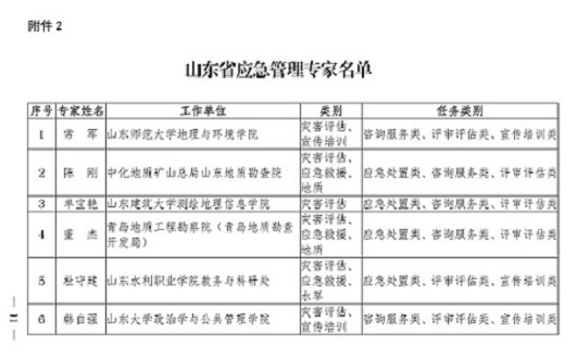 為充分發(fā)揮專家的決策咨詢和技術(shù)支撐作用,切實(shí)提高全省應(yīng)急管理的科技水平,提升綜合防災(zāi)減災(zāi)救災(zāi)能力,有效應(yīng)對安全生產(chǎn)類、自然災(zāi)害類突發(fā)事件,根據(jù)《山東省應(yīng)急管理專家管理辦法》(魯應(yīng)急發(fā)〔2021〕6號)和《山東省應(yīng)急管理專家遴選實(shí)施辦法》(魯應(yīng)急辦發(fā)〔2021〕3號),省應(yīng)急廳組織開展了應(yīng)急管理專家遴選工作。經(jīng)申報(bào)、初審、審定和公示等遴選程序,決定聘閃淳昌等86名同志為山東省應(yīng)急管理咨詢專家(附件1)、常軍等1711名同志為山東省應(yīng)急管理專家(附件2)?,F(xiàn)予以公布,聘期3年。聘期內(nèi)實(shí)施動(dòng)態(tài)管理,在聘情況以省應(yīng)急廳網(wǎng)站專家查詢系統(tǒng)顯示信息為準(zhǔn)。