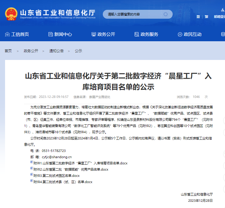12月28日,山東省工業(yè)和信息化廳官網(wǎng)發(fā)布《關(guān)于第二批數(shù)字經(jīng)濟“晨星工廠”入庫培育項目名單的公示》,我縣天和紙業(yè)、魯珠水泥、彩山鋁業(yè)、碧藍生物等18家企業(yè)入選,數(shù)量居全市第一。目前,全縣共有31家企業(yè)入選“晨星工廠”培育庫。